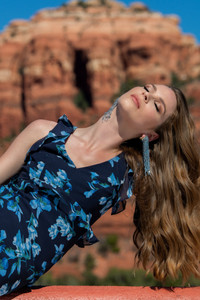 The Magdelaine Gown is designed to bring a touch of elegance to special occasions. Crafted in our Poseidon Venetian Petal print, she features a tiered skirt for an effortless look that offers lasting comfort. Enjoy chic sophistication at your next event in this classic and timeless gown. As always, our prints are exclusive to Sachin&Babi and created by our design team, ensuring you will not see them anywhere other than in our Collection. Details: - Model is 5'11" wearing A Size 2 - Full-Length, 61" from top of shoulder to bottom hem - Back Zipper - Full Lining - No Pockets - Printed Poly Chiffon - 100% Polyester - Imported - Style # S251G19-418