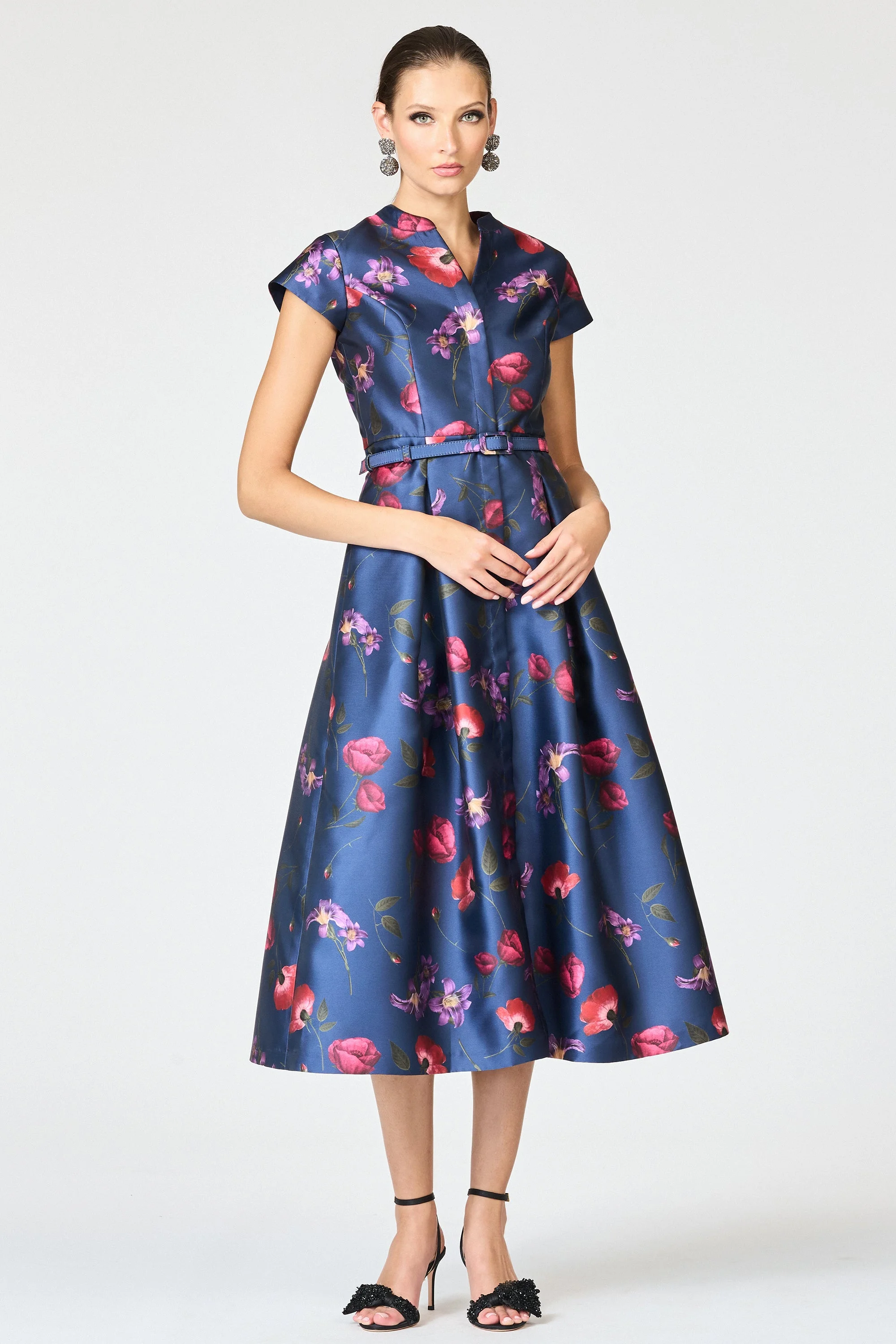 From day to night, work to happy hour, Martine is right there with you. This mid-length dress in our Midnight Jardin print features a dress-shirt style collar, cap sleeves, and a complementary skinny belt. The slight A-line skirt makes her classic, flattering, and a staple piece in your wardrobe. As always, our prints are exclusive to Sachin&Babi and created by our design team, ensuring you will not see them anywhere other than in our Collection. Details: - Model is 5'10 wearing a size 2 - Full-Length, 48" from top of shoulder to bottom hem - Plus size 50" - No Zipper - Pockets - Printed Mikado - 100% Polyester - Imported - Style # R262D14-418