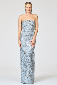 Sophia is a star, a singular gown that knows no rival, only admirers. Crafted from Metallic Cloque, in our exclusive custom Pewter Gardens pattern. This simple style is designed with meticulous care to ensure the most flattering fit. She is a column of quiet luxury. As always, our prints are exclusive to Sachin&Babi and created by our design team, ensuring you will not see them anywhere other than in our Collection. Details: - This Is Intended To Be A Full-Length Gown - Model is 5'10" wearing size 2 - Full-Length, 60 1/2" from top of shoulder to bottom hem - Belt - Back Zipper - Full Lining - No Pockets - Back Vent - Metallic Cloque - 49% Polyester, 13% Metallic, 11% Nylon, 25% Rayon, 2% Spandex - Imported - Style # R261G60-040