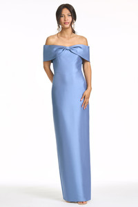 The Michelle gown in Twilight is an ode to modern glamour. With its sculptural off-the-shoulder twist, it frames the decolletage beautifully while offering a refined sense of coverage through the arms. The silhouette glides along the body with quiet confidence, creating a flawless, figure-skimming fit. Sophisticated and striking, Viveca is designed to leave a lasting impression. Details: - This Is Intended To Be A Full-Length Gown - Model is 5'11" wearing size 2 - Full-Length, 60 1/2" from top of shoulder to bottom hem - Back Zipper - Back Vent - Full Lining - Stretch Mikado - 97% Polyester, 3% Spandex - Imported - Style # S261G03-495