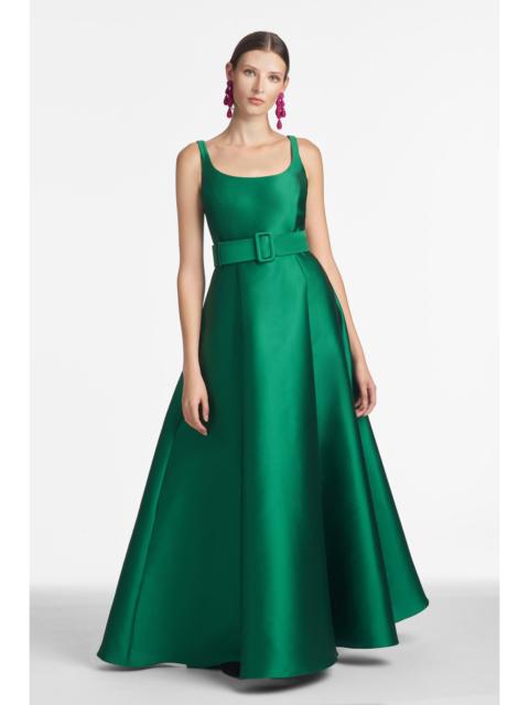 The Mila Gown is an elegant, sleek, example of balance by design. A sleek sleeve of crepe creates a column for curves. At the waist, a cascading ruffle continues to the hem and reveals a slit that goes just above the knee. Details: - Model is 5'10" Wearing A Size 2 - Full-Length, 60" from top of shoulder to bottom hem - Light Non-stretch Crepe - 100% Polyester - Back Zipper - Imported - Style # R221G10-310