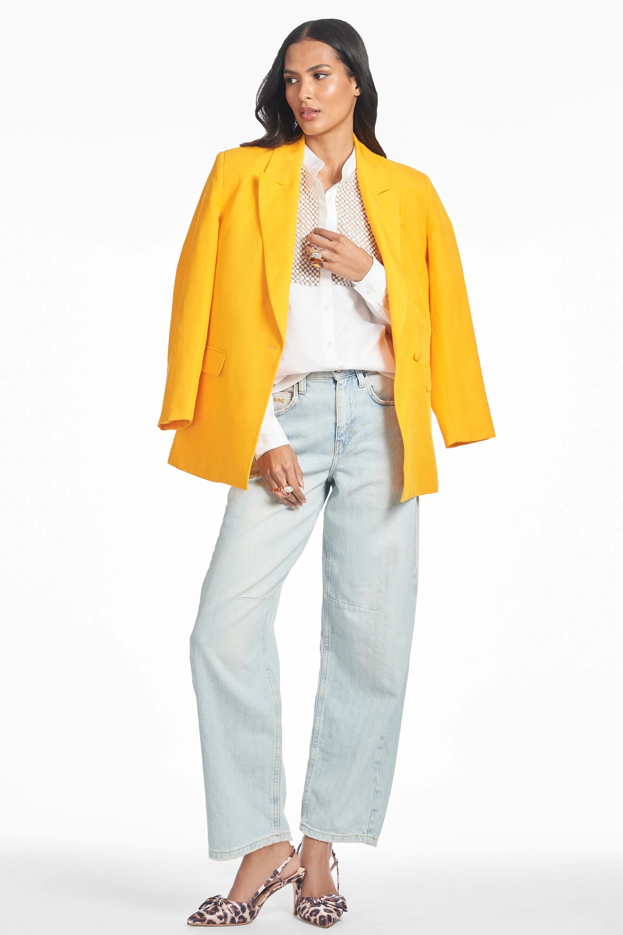 Nikita is a necessary staple for the summer months. Our easy-fit linen/rayon blazer is the perfect companion to any look that needs a little polish or in our case a pop of color. This summertime chic jacket works over maxi dresses, skirts, trousers and denim. Details: - Model is 5'11" wearing size S - Linen Rayon - 57% Linen 43% Rayon - Imported - Style # T251J01-722