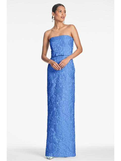 Sophia is here to steal the show. Crafted from Italian cloque, this simple syle is designed with meticulous care to ensure the most flattering fit. She is a column of quiet luxury wrapped with a bow. Details: - This Is Intended To Be A Full-Length Gown - Model is 5'11" wearing size 2 - Full-Length, 60" from top of shoulder to bottom hem - Back Zipper - Full Lining - No Pockets - Jacquard Relief - 94% Polyester - 6% Nylon - Imported - Style #S242G11-410