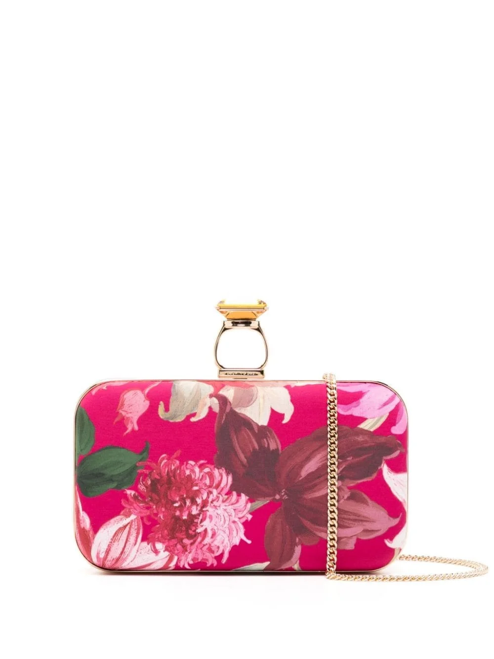 On The Rocks clutch bag Highlights - Pink - Multicolour - Duchess satin weave - All-over floral print - Crystal embellishment - Detachable chain-link shoulder strap - Clasp fastening - Main compartment - Satin lining - Gold-tone hardware Imported Composition Polyester 100% SIZE & FIT Model measurements Height 5 ft 9 in(1.76 m) Bust/Chest 31.1 in(79 cm) Hips 35.03 in(89 cm) Waist 24.4 in(62 cm) Measurement DEPTH 2.36 in(6 cm) HEIGHT 4.72 in(12 cm) STRAP 20.47 in(52 cm) WIDTH 7.48 in(19 cm)