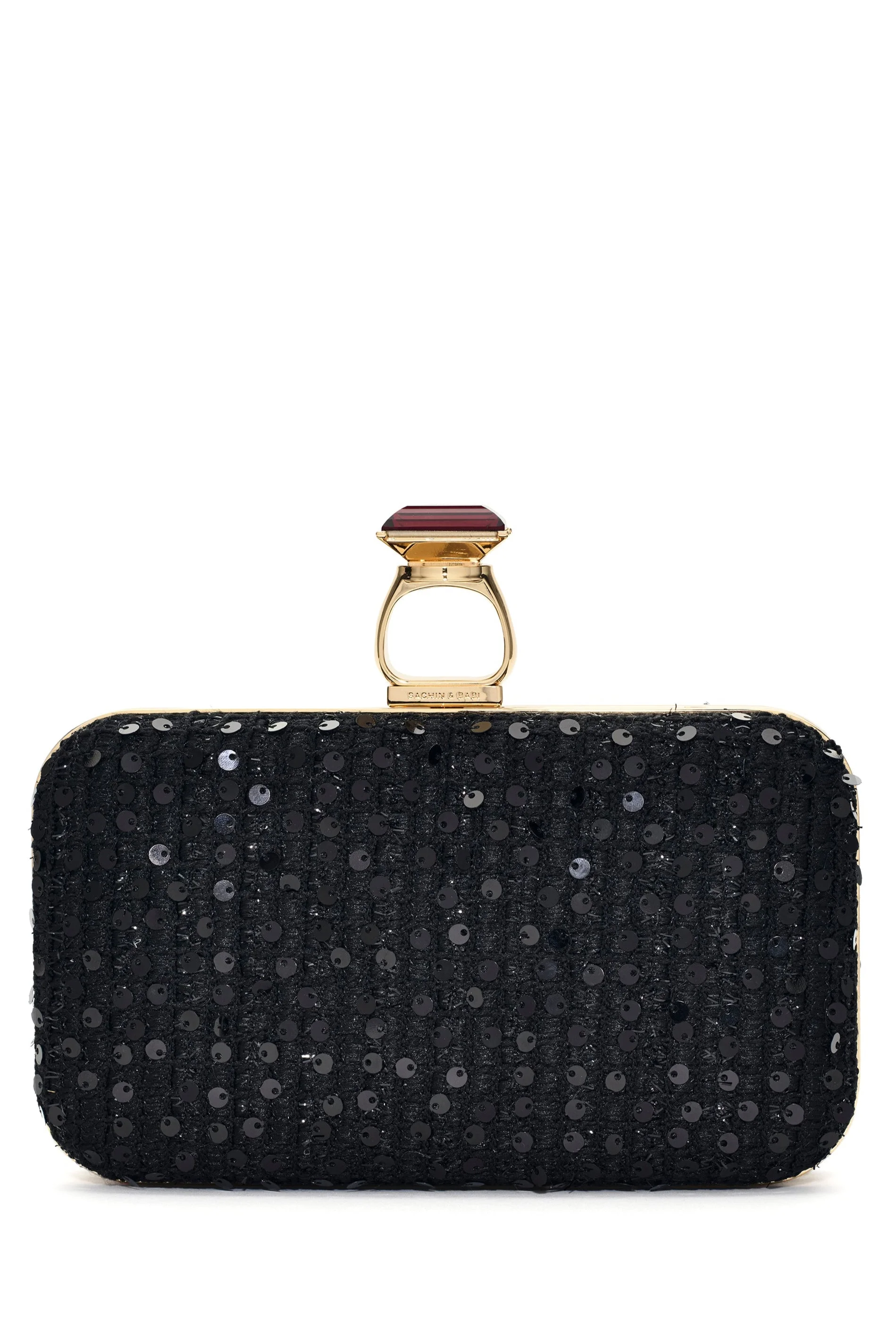 She’s definitely more than a friendship ring. She’s, as they say, “a rock.” The full-framed convertible clutch, complete with a gold-tone finish and a removable chain, is sure to impress with its faceted step-cut crystal embellishment. From date night to gala season and everything in between, this piece will be your new best (and sparkliest) friend. As always, our prints are exclusive to Sachin&Babi and created by our design team, ensuring you will not see them anywhere other than in our Collection. Details: - 7.68" L X 2.36" W X 4.9" H - Clasp Closure - Outer: Sequins Tweed - Inner: Satin Lining - 100% Polyester - Metal Chain included with 20" Drop for Shoulder or Crossbody wear - Imported - Style # F251H02-001