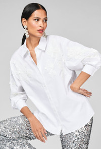 The Paradiso is an example of best of both worlds: a classic cotton button down with intricately embroidered white sequin floral motifs throughout. She can be dressed up or dressed down, worn season after season, and one that will be a closet staple for years to come. Details: - Model is 5'10" wearing a size S - 28" Long - 32" Sleeve Length - Front Button Closure - Stretch Cotton - 97% Cotton, 3% Spandex - Imported - Style #F241T03-100
