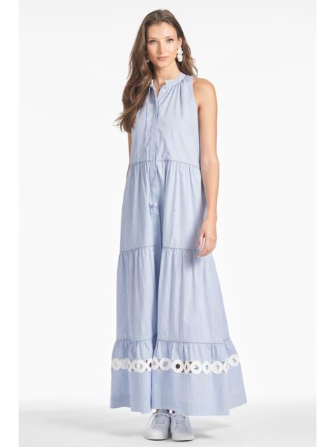 Finally - a sundress that's as glamorous as it is wearable. She's 100% Indian cotton with eyelet embroidery throughout and a tassel tie detail at the neckline. Pair her back to flip flops with messy hair or to heels and a red lip - you really can't go wrong. Warning: the Positano dress will have you transported to a rocky beach with an aperol spritz in hand. As always, our prints are exclusive to Sachin&Babi and created by our design team, ensuring you will not see them anywhere other than in our Collection. Details: - Model is 5'10" wearing size S - 54" Long - Front Button Closure - Indian Pinstripe Cotton - 100% Cotton - Imported - Style #T242D43-462