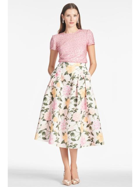 Cool meets glamor with the Veronica Top in Electric Lime. This fitted tee in allover scattered lime green sequins has a fitted, crew neck bodice, with a back zipper for ultimate comfort and convenience. Pair her back to white jeans for a summer soiree or go all out with our lime green Sydney ball skirt for a showstopping look. Online Exclusive Details: - Model is 5'11" wearing size 2 - 22" Long - Back Zipper - Scatter Sequins - 95% Polyester - 5% Spandex - Imported - Style #T241T03-327