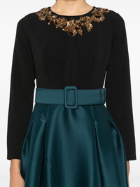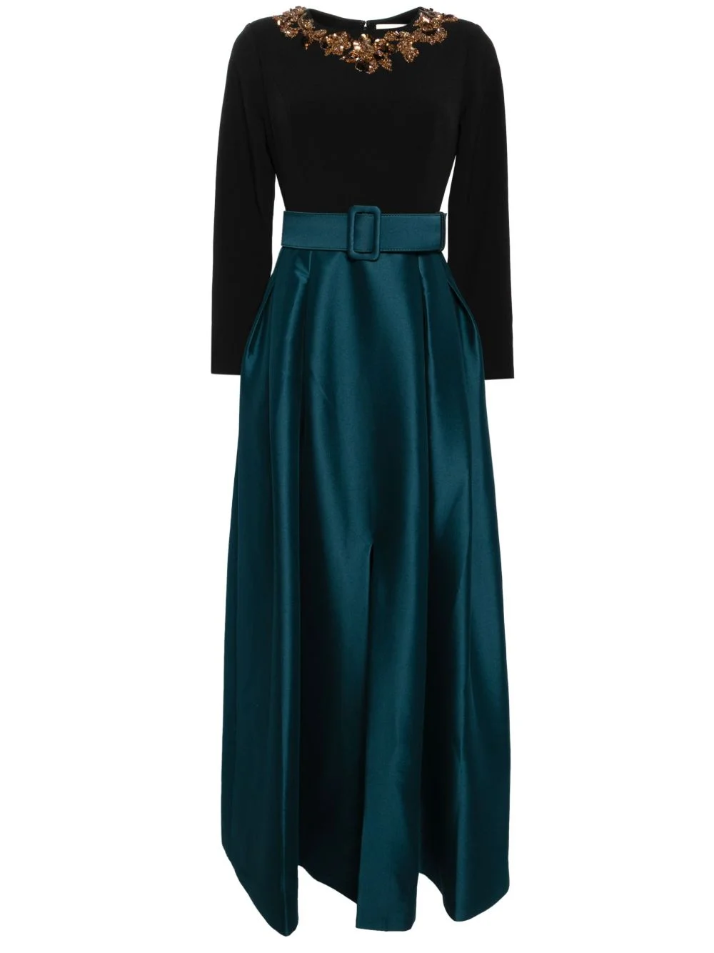 Victoria gown Highlights - Black - Rear zip fastening - Crystal embellishment - Two side inset pockets - Long sleeves - Round neck - Straight hem - Full lining Imported Composition Polyester 97%, Spandex/Elastane 3% SIZE & FIT Model measurements Height 5 ft 10 in(1.77 m) Bust/Chest 31.49 in(80 cm) Hips 35.43 in(90 cm) Waist 25.19 in(64 cm) FittingInformation Designed for a close fit at the chest and waist with a loose fit at the hip The belt offers adjustability for fitted preferences Made from a midweight stretch fabric, this piece offers elasticity and flexibility when worn Washing instructions Dry Clean Only