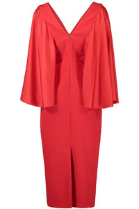 DETAILS AND INSIGHT Safiyaa aretha dress in cherry red. Heavy Crepe: 92 % Polyester , 8 % Elastane Satin Chiffon: 97 % Polyester, 3 % Lycra Dry Clean Imported Style D423.1H-CHERRY RED