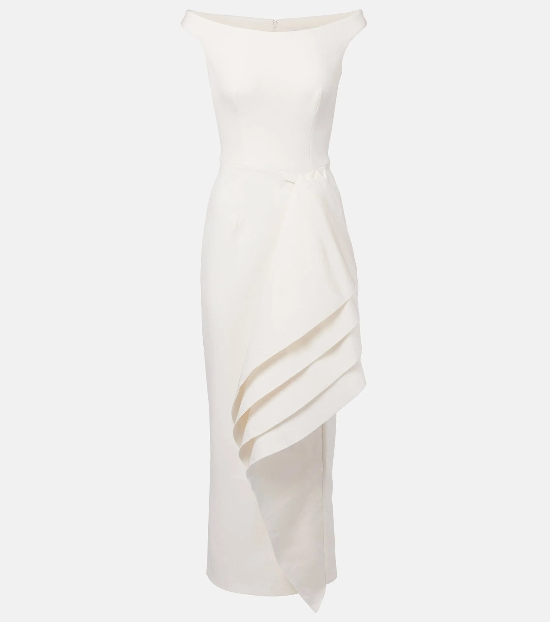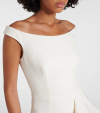 Product Details - Material: 92% polyester, 8% elastane - Care instructions: dry clean - Made in Lithuania - Designer color name: Ivory - Item color: ivory - Material II: 100% polyester - Lining: 97% polyester, 3% elastane - Item number: P01045423 Size & Fit - True to size - Off-the-shoulder - Fitted - Non-stretchy fabric - slit length 49cm-19.5" - The model seen in the picture is 178cm-5'10" and wearing a size FR 36