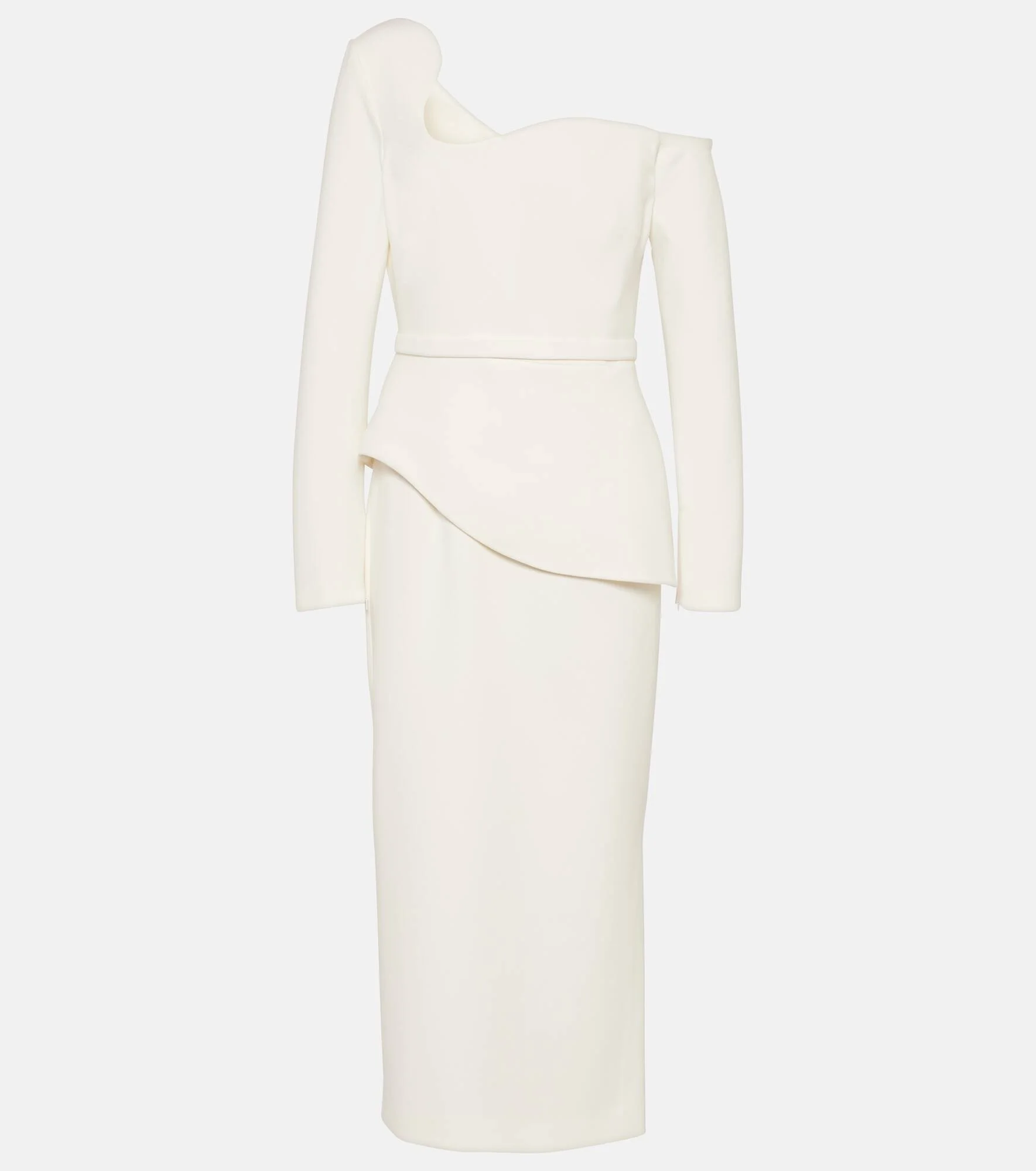 Safiyaa is a master when it comes to designing pieces with the utmost elegance. This bridal midi dress is defined by its asymmetrical silhouette. Product Details - Material: 92% polyester, 8% elastane - Care instructions: dry clean - Made in Turkey - Designer color name: Ivory - Lining: 100% polyester - Closure: zipped back, hook fastening - Detachable belt - Item number: P00866047 Size & Fit - True to size - Internal boned corset for support - Cinched waist - Mid-weight material - slit length 36cm-14" - The model seen in the picture is 178cm-5'10" and wearing a size FR 36
