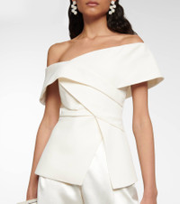From Safiyaa's bridal line, the Eimear top is made from heavy crêpe with a folded off-shoulder silhouette and a split peplum hem. Product Details - Closure: zipped back - Material: 8% elastane, 92% polyester - Made in Turkey - Designer color name: Ivory - Care instructions: hand wash - Item number: P00740372 Size & Fit - Fits large to size - we recommend trying one size smaller - Off-the-shoulder - Cinched waist - Mid-weight material - Falls to the hip - The model seen in the picture is 178cm-5'10" and wearing a size FR 34