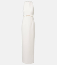 Minimalist and exquisitely elegant, the Jalie gown features a classic column silhouette enhanced by a slim cutout and charming bow details. This piece is made from Safiyaa's signature heavy crepe – a fabric that is favored for its graceful draping qualities. Product Details - Material: 92% polyester, 8% elastane - Care instructions: dry clean - Made in Lithuania - Designer color name: Ivory - Item color: white - Material II: 100% polyamide - Lining: 97% polyester, 3% elastane - Trim: 100% polyester - Closure: concealed zipped back - Hem: straight - Short vent - Item number: P01101608 Size & Fit - True to size - Cinched waist - Non-stretchy fabric - slit length 52cm-20.5" - The model seen in the picture is 178cm-5'10" and wearing a size FR 36