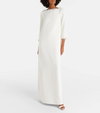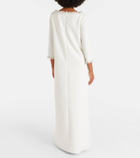 Featuring a minimalist, flowy silhouette, the Lanai gown is finished with sequins and crystals at the hems. This piece is made from Safiyaa's signature heavy crepe – a fabric that is favored for its graceful draping qualities. Product Details - Material: 92% polyester, 8% elastane - Care instructions: dry clean - Made in Lithuania - Designer color name: Ivory With Crystal - Item color: white - Hardware color: white, silver - Lining: 97% polyester, 3% elastane - Trim: 80% plastic, 20% glass - Pockets: side slit pockets - Closure: concealed zipped back - Item number: P01101596 Size & Fit - True to size - Designed for a loose fit - Non-stretchy fabric - The model seen in the picture is 178cm-5'10" and wearing a size FR 36