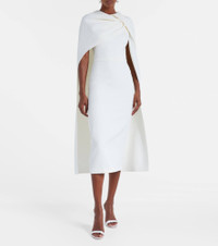 Look your best during the big day in the Oria crepe midi dress. A Safiyaa signature, the cape detail is a defining feature that creates an elegant silhouette. Product Details - Material: 92% polyester, 8% elastane - Care instructions: dry clean - Made in Lithuania - Designer color name: Ivory - Item color: white - Lining: 97% polyester, 3% elastane - Closure: zipped back - Short vent - Fully lined - Item number: P01101593 Size & Fit - True to size - Fitted - Loose outer layer - Stretchy fabric - The model seen in the picture is 178cm-5'10" and wearing a size FR 36