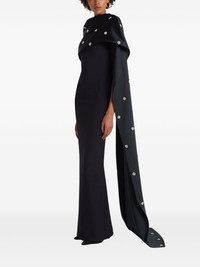 cape-attached dress Highlights - Midnight blue - Concealed rear fastening - Cape design - Fitted waistline - Glass crystal embellishment Imported Composition Outer: Polyester 92%, Resin 65%, glass 35%, Elastane 8% Lining: Polyester 85%, Acetate 10%, Lycra 5% Washing instructions Dry Clean Only
