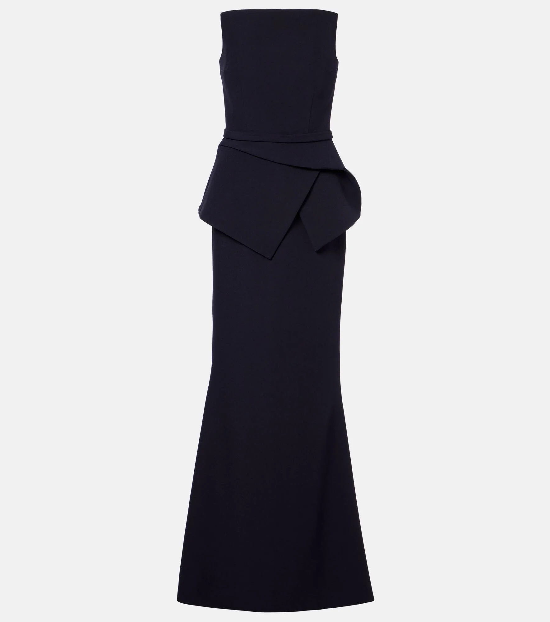 Featuring an architectural peplum hem and a bustier top with boning, the Carter gown is a perfect match for special events and more. This piece is made from Safiyaa's signature heavy crepe – a fabric that is favored for its graceful draping qualities. Product Details - Material: 92% polyester, 8% elastane - Care instructions: dry clean - Made in Lithuania - Color: blue - Designer color name: Midnight Navy - Lining: 97% polyester, 3% elastane - Boning - Detachable belt - Closure: invisible zipper - Item number: P01124154 Size & Fit - True to size - Ideal fit for larger bust sizes - Strapless - Cinched waist - Non-stretchy fabric - The model seen in the picture is 178cm-5'10" and wearing a size FR 36