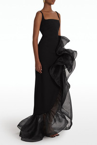 DETAILS AND INSIGHT Safiyaa derry gown in black. SHELL: 92% PES, 8% EA. CONTRAST: 100% PES. LINING: 97% PES, 3% LY. Delicte Dry Clean Made in LITHUANIA Style DL800.2-BLK/BLK