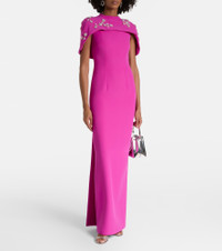 A Safiyaa signature, the cape detail is a defining feature that creates an elegant silhouette. It's featured on this gown, a show-stopping piece with a fitted waist, column skirt, and shimmering embellishments placed delicately across the neckline. Product Details - Material: 92% polyester, 8% elastane - Care instructions: dry clean - Made in Lithuania - Designer color name: Pompeii W Glass Flower - Item color: pink - Closure: zipped back - Two-piece set - Detachable collar - Item number: P01045454 Size & Fit - True to size - Fitted - Loose outer layer - slit length 52,0cm-20.5" - The model seen in the picture is 178cm-5'10" and wearing a size FR 36