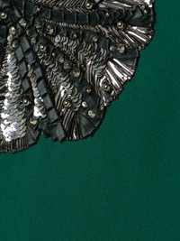 "Safiyaa stands for timeless elegance;" says founder Daniela Karnuts, but there are plenty of modern details too. This 'Ginevra' gown is cut from 'Botanic' crepe to sculpt your figure and embellished with beads, sequins and strips of satin arranged to depict fan-shaped flowers. The flowing cape pools to the floor for extra drama. Responsible Craftsmanship. This product promotes artisanal skills and a brand that invests in communities and adheres to fair-trade principles. Find out more about our NET SUSTAIN criteria here.