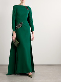 Ginevra Cape-effect Embellished Crepe Gown