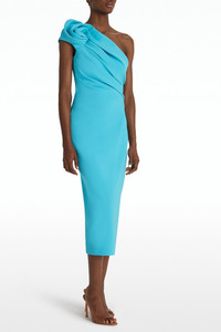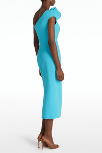 DETAILS AND INSIGHT Safiyaa granalle dress in aquamarine. SHELL: 92% PES, 8% EA. LINING: 97% PES, 3% LY Dry Clean Made in TURKEY Style D764.1-AQUAMARINE