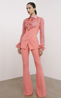 PRODUCT DETAILS - As featured in the Resort '22 lookbook, style yours with a tonal blouse from the collection - Slim fit, flared silhouette, fitted waist, pressed creases, unlined - Zip fastening at side - This style fits true to size, we suggest taking your normal size - Composition: 92% polyester, 8% elastane - Dry clean only - Imported SIZE & FIT - Model is wearing a sample size FR 36 - This style fits true to size - We suggest taking your normal size