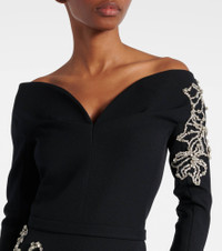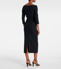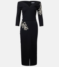 The Linda midi dress from Safiyaa is a glamorous design for evening occasions. The style is detailed with shimmering crystal adornments at the sleeve and hip and has an elegant off-shoulder silhouette. Product Details - Material: 92% polyester, 8% elastane - Care instructions: do not wash - Made in Turkey - Designer color name: Black With Crystals - Item color: black - Lining: 97% polyester, 3% elastane - Trim: 48% polyester, 40% glass, 10% metal, 2% elastane - Side slits - Closure: invisible zipper - Item number: P01045420 Size & Fit - Fits small to size - we recommend trying one size larger - Cinched waist - Non-stretchy fabric - slit length 34cm-13.5" - The model seen in the picture is 178cm-5'10" and wearing a size FR 38