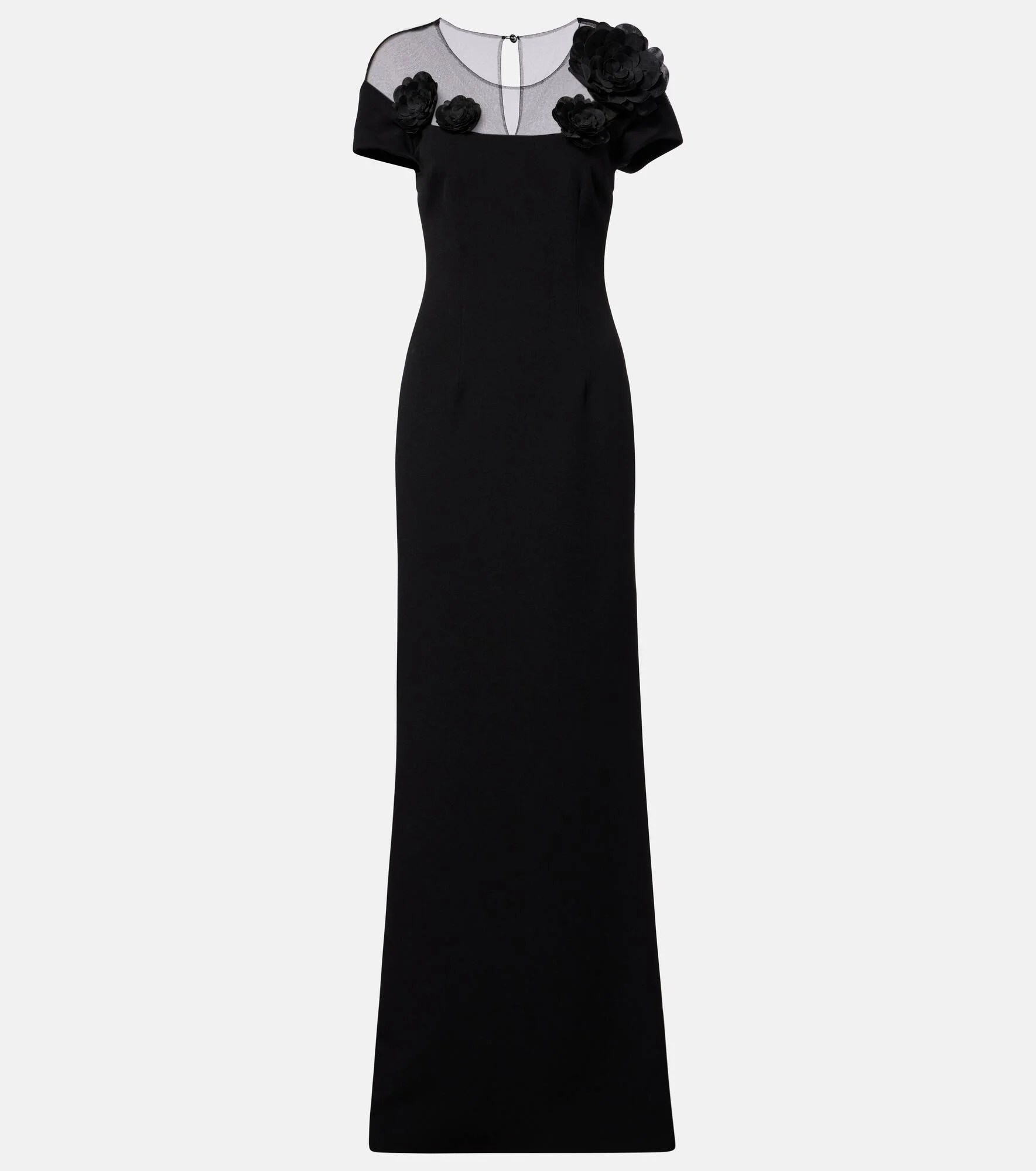 The Noah gown features organza floral-appliques, a sheer mesh neckline, and column skirt. This piece is made from Safiyaa's signature heavy crepe – a fabric that is favored for its graceful draping qualities. Product Details - Material: 92% polyester, 8% elastane - Care instructions: spot clean - Made in Lithuania - Color: black - Designer color name: Black With Black - Item color: black - Material II: 100% polyamide - Trim: 100% polyester - Closure: invisible zipper, buttoned back - Hem: straight - Item number: P01124140 Size & Fit - True to size - Fitted - Slightly stretchy fabric - The model seen in the picture is 178cm-5'10" and wearing a size FR 36