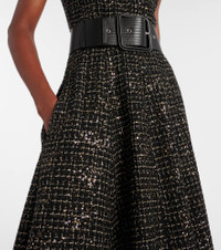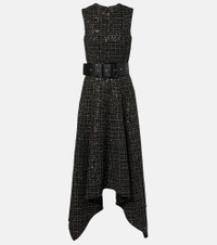 The Okimi dress from Safiyaa is cut from tweed and flows down to an asymmetric, midi-length hemline. This design features a checked pattern, sequin embellishments, and a detachable belt that cinches securely around the waist. Product Details - Material: 70% polyester, 30% acetate - Care instructions: spot clean - Made in Lithuania - Designer color name: Black & Gold - Item color: black, gold - Material II: 40% polyurethane, 32.5% cotton, 17.5% polyester, 10% other fibres - Lining: 52% viscose, 48% acetate - Detachable belt - Closure: zipped back, hook-fastening back - Hem: uneven - Item number: P01078653 Size & Fit - True to size - Cinched waist - Non-stretchy fabric - The model seen in the picture is 178cm-5'10" and wearing a size FR 36
