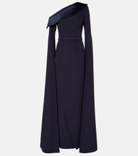 Safiyaa celebrates natural confidence, unwavering beauty, and technical innovation. Made from the brand's signature heavy crepe, a fabric that is favored for its graceful draping qualities, the Rinoa gown is characterized by one-shoulder, satin-trimmed neckline and exaggerated sleeves. Product Details - Material: 92% polyester, 8% elastane - Care instructions: dry clean - Made in Lithuania - Designer color name: Midnight Navy - Item color: blue - Interlining: 96% polyester, 4% elastane - Lining: 97% polyester, 3% elastane - Closure: invisible zipper - Boning - Detachable belt - Item number: P01078677 Size & Fit - True to size - Extra-long sleeves - Shoulder pad inserts - Fitted - Non-stretchy fabric - slit length 52cm-20.5" - Height of model is 175cm-69" and wears a size FR 36