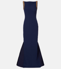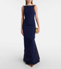 The Sloane gown features a timeless silhouette with striking adornments and flaring at the hem for high impact. This piece is made from Safiyaa's signature heavy crepe – a fabric that is favored for its graceful draping qualities. Product Details - Material: 92% polyester, 8% elastane - Care instructions: dry clean - Made in Lithuania - Designer color name: Azurite On Maritime W Mul-Gold - Item color: blue - Material II: 100% polyester - Trim: 100% resin - Closure: concealed zipped back - Item number: P01104112 Size & Fit - True to size - Fitted - Non-stretchy fabric - The model seen in the picture is 178cm-5'10" and wearing a size FR 36