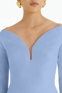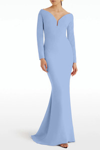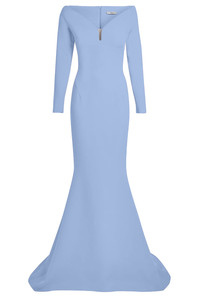 DETAILS AND INSIGHT Safiyaa wilson gown in blue ash. HEAVY CREPE, 92% POLYESTER, 8% ELASTANE Dry clean only Made in Turkey Style DL758.1-BLUE ASH