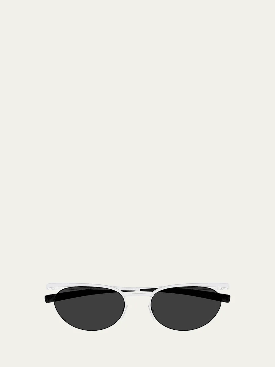 Saint Laurent "SL 862002" aviator sunglasses crafted from shiny silver metal with a minimalist, fullrim construction. Eye/bridge/temple (in mm): 5419140 Solidcolored lenses Adjustable nose pads Engraved logo temples Metal 100% UVA/UVB protection Made in Italy