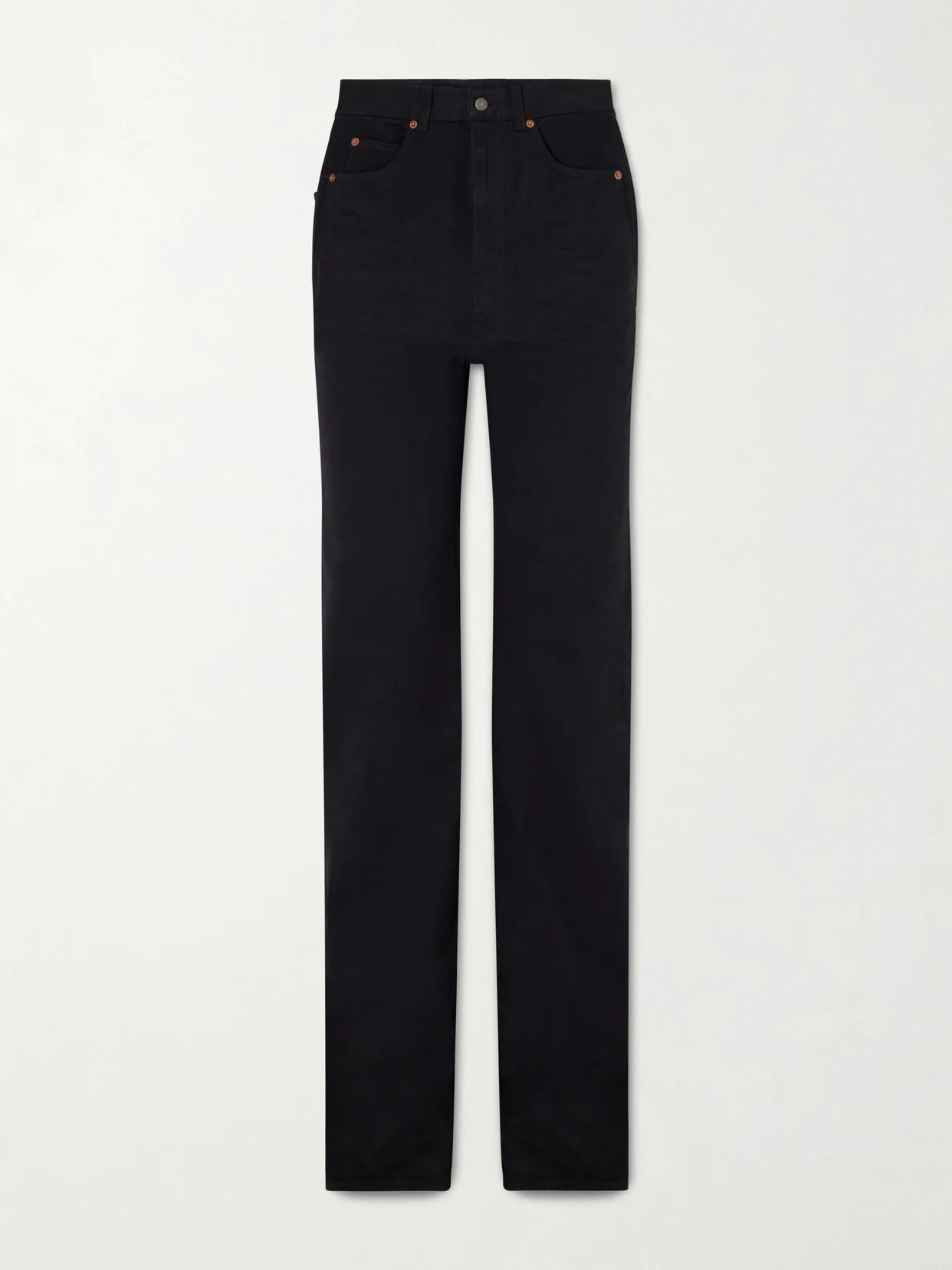 SAINT LAURENT's jeans nod to '70s silhouettes with their exaggerated flared cuffs. Made from denim, they sit high on the waist and are cut in a straight-leg profile. Style yours with clogs and a scarf tied at the waist.