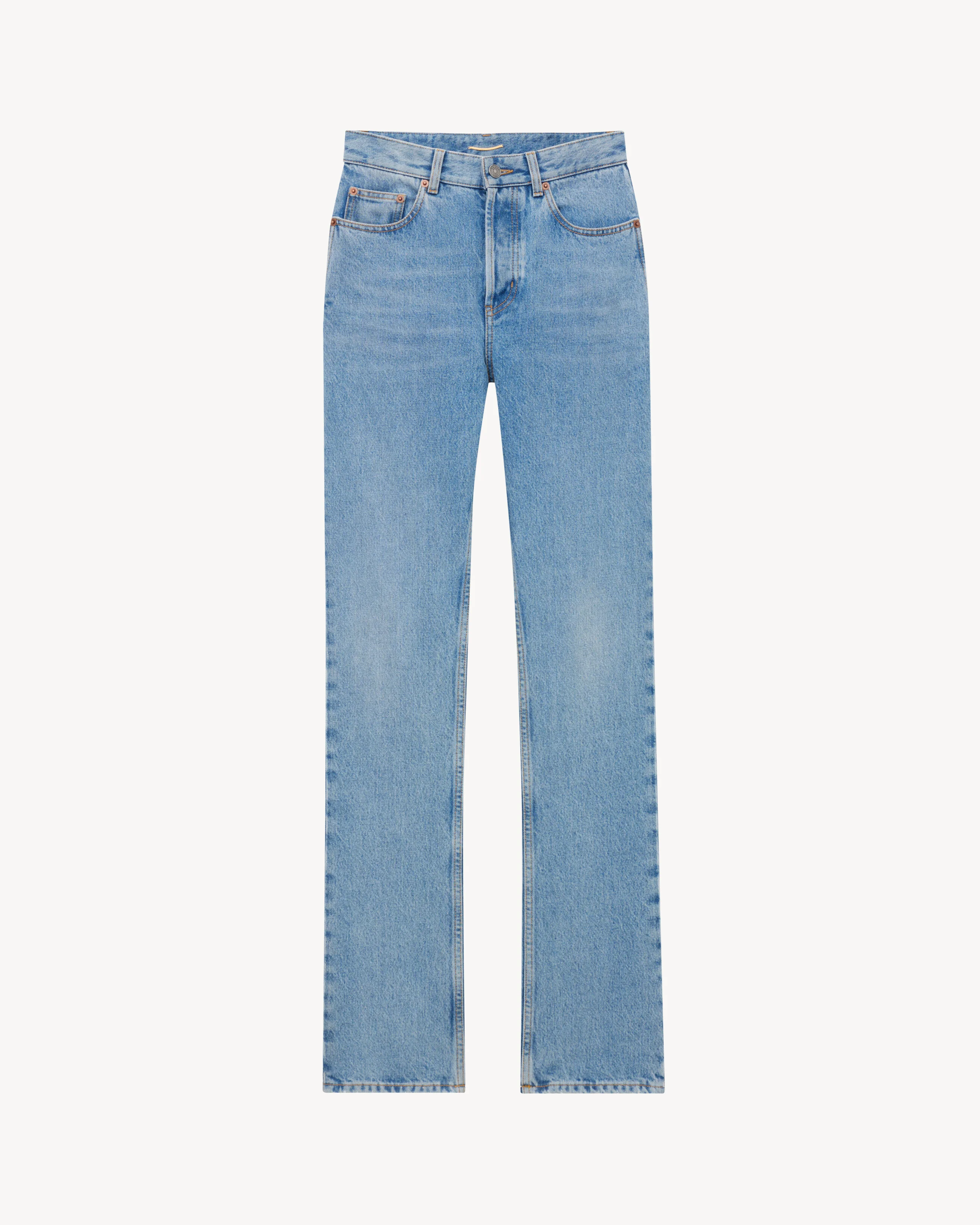 HIGH-WAISTED SLIM-FIT FIVE-POCKET JEANS WITH A LONG STRAIGHT LEG AND BUTTON FLY, MADE WITH CERTIFIED COTTON. - CERTIFIED COTTON - BUTTON CLOSURE WITH BUTTON FLY - FIVE-POCKET JEANS - WAISTBAND WITH BELT LOOPS - SAINT LAURENT PARIS EMBOSSED LEATHER JACRON - 100% COTTON - STYLE ID 807142Y11CH4931 - MADE IN ITALY