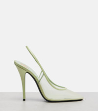 Since its conception in 1961, Saint Laurent has been coveted for its elegant Parisian aesthetic. Made in Italy from mesh with tonal leather trims, the Anita pumps are a slingback pair with pointed-toe silhouettes and 110mm stiletto heels. Product Details - Upper: fabric - Lining: fabric - Sole: leather insole and sole - Color: green - Toe shape: almond toe - Made in Italy - Includes: shoe box, dust bag - Designer color name: Cream/Vert Pastel - Slingback strap - Item number: P01135870 Size & Fit - True to size - European sizes - 11cm-4.5" heel