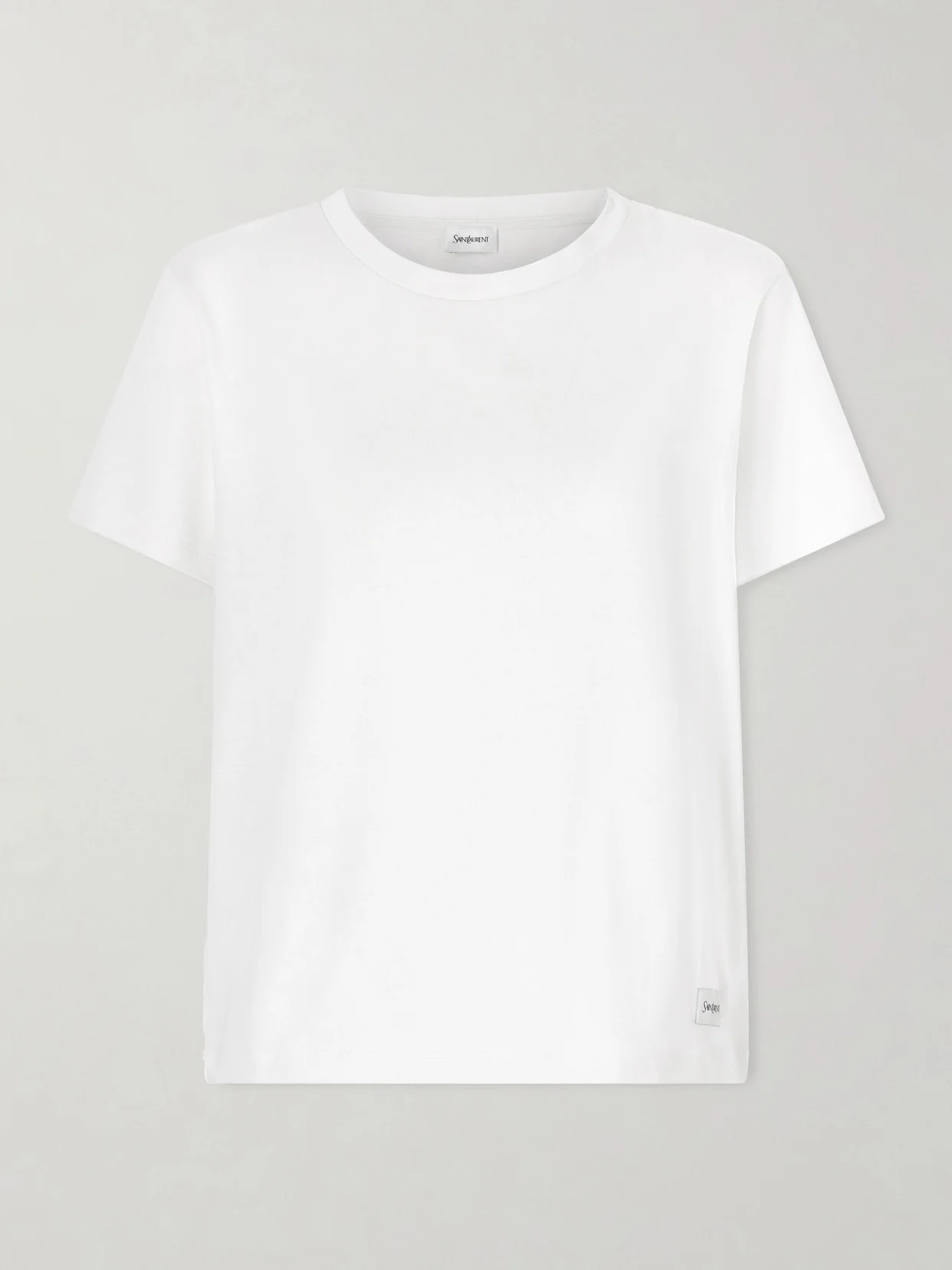 Essential pieces are always a good place to start. Made in Italy, SAINT LAURENT's simple T-shirt is cut from soft cotton and modal-blend jersey and has a classic crew neckline. Half-tuck yours into jeans to keep the logo patch on display.