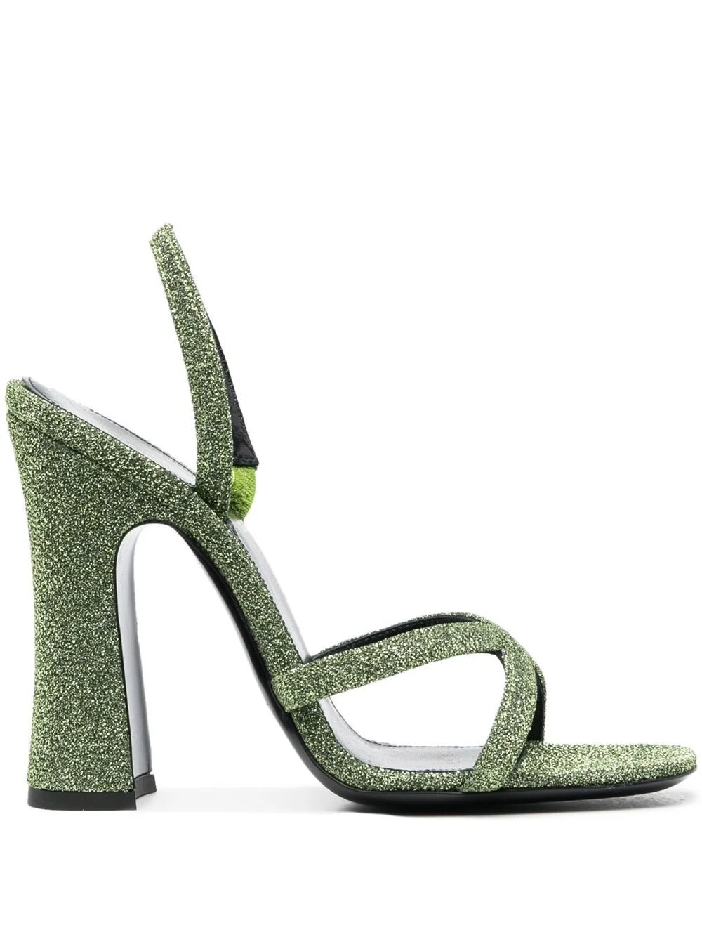Arancha 110mm lurex sandals Presented in glimmering jade-green lurex, these sandals showcase Saint Laurent's understated glamour. The pair has a minimalist silhouette, which sits atop a 110mm block heel. Made in Italy Composition Outer: Lurex 100% Lining: Calf Leather 100% Sole: Calf Leather 100% SIZE & FIT Measurement HEEL 4.7 in(12 cm)