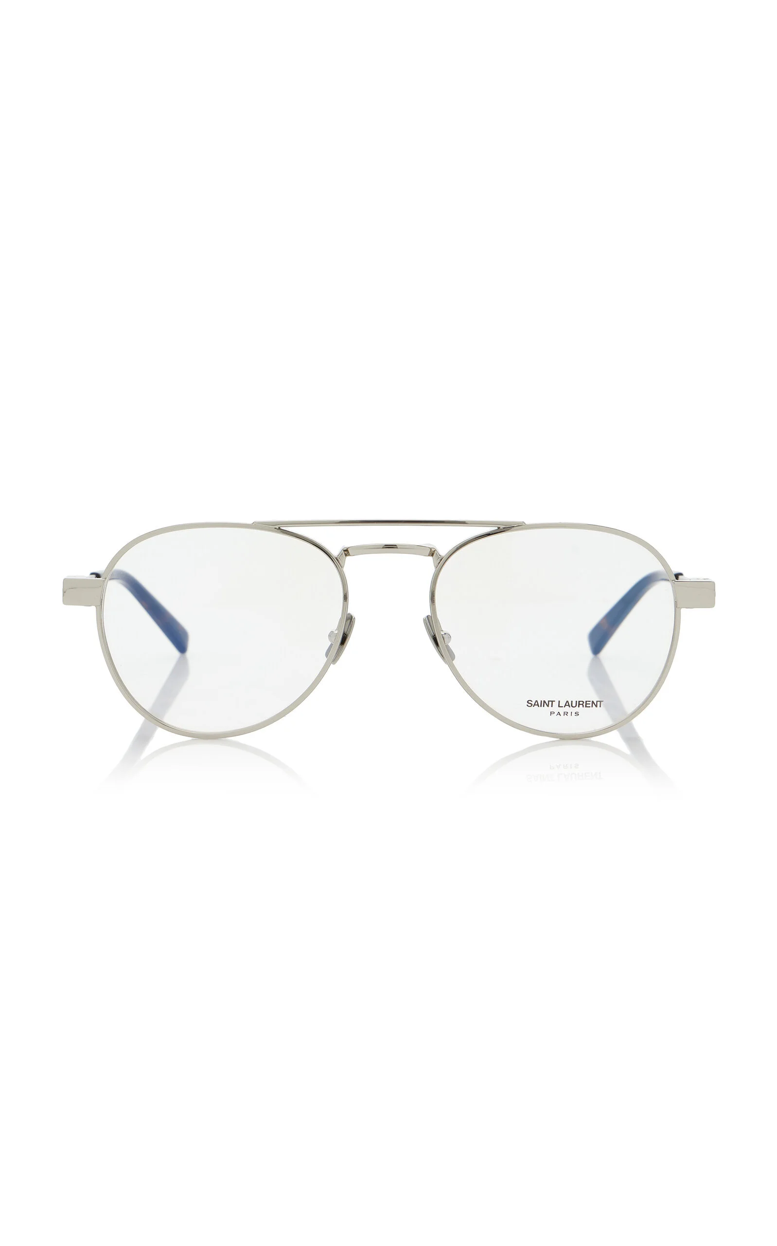 As bold and timeless as its ready-to-wear, Saint Laurent's eyewear has been seen on the world's most stylish, like Hailey Bieber and Zoe Kravitz. These glasses have classic aviator frames made from lightweight silver metal with acetate-tipped arms for comfort. PRODUCT DETAILS - Composition: metal - Made in Japan