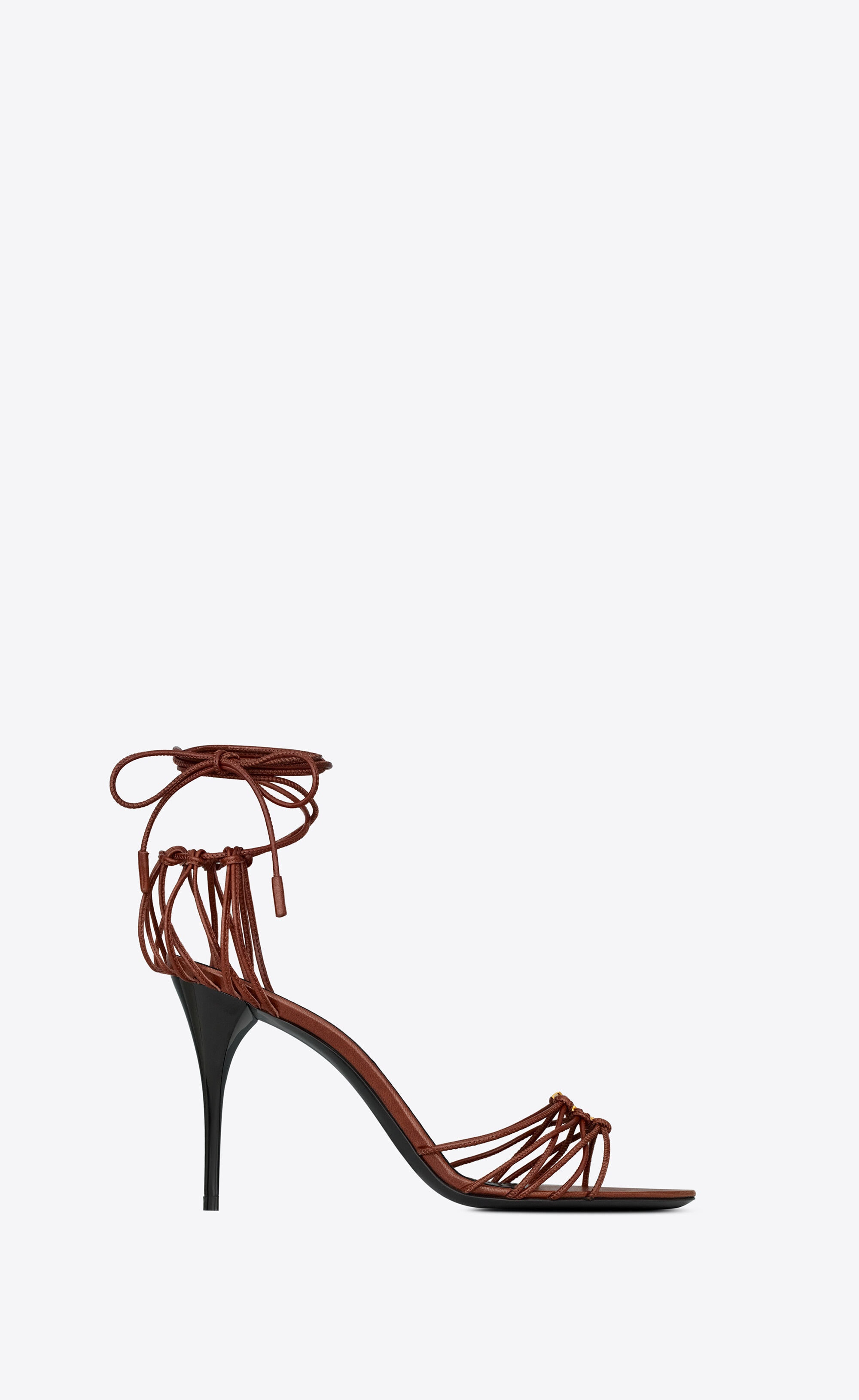 LACED STILETTO SANDALS DECORATED WITH THE CASSANDRE, FEATURING AN ALMOND TOE AND LACE-UP ANKLE STRAPS. - 95% LAMBSKIN, 5% BRASS - LEATHER SOLE - ADJUSTABLE ANKLE STRAP - TOTAL HEEL HEIGHT: 9 CM / 3.5 INCHES - CASSANDRE IN BRONZE-TONE METAL - STYLE ID 785706AADF02603 - MADE IN ITALY