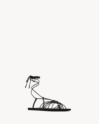 FLAT SANDALS DECORATED WITH THE CASSANDRE, FEATURING AN ALMOND TOE, LACE-UP ANKLE STRAPS, AND SATIN INSOLE. - LEATHER SOLE - ROUND SAINT LAURENT-ENGRAVED METAL PLAQUE ON THE INSOLE - ADJUSTABLE ANKLE STRAP - CASSANDRE IN BRONZE-TONE METAL - LAMBSKIN, METAL - STYLE ID 820656AAEOF1000 - MADE IN ITALY