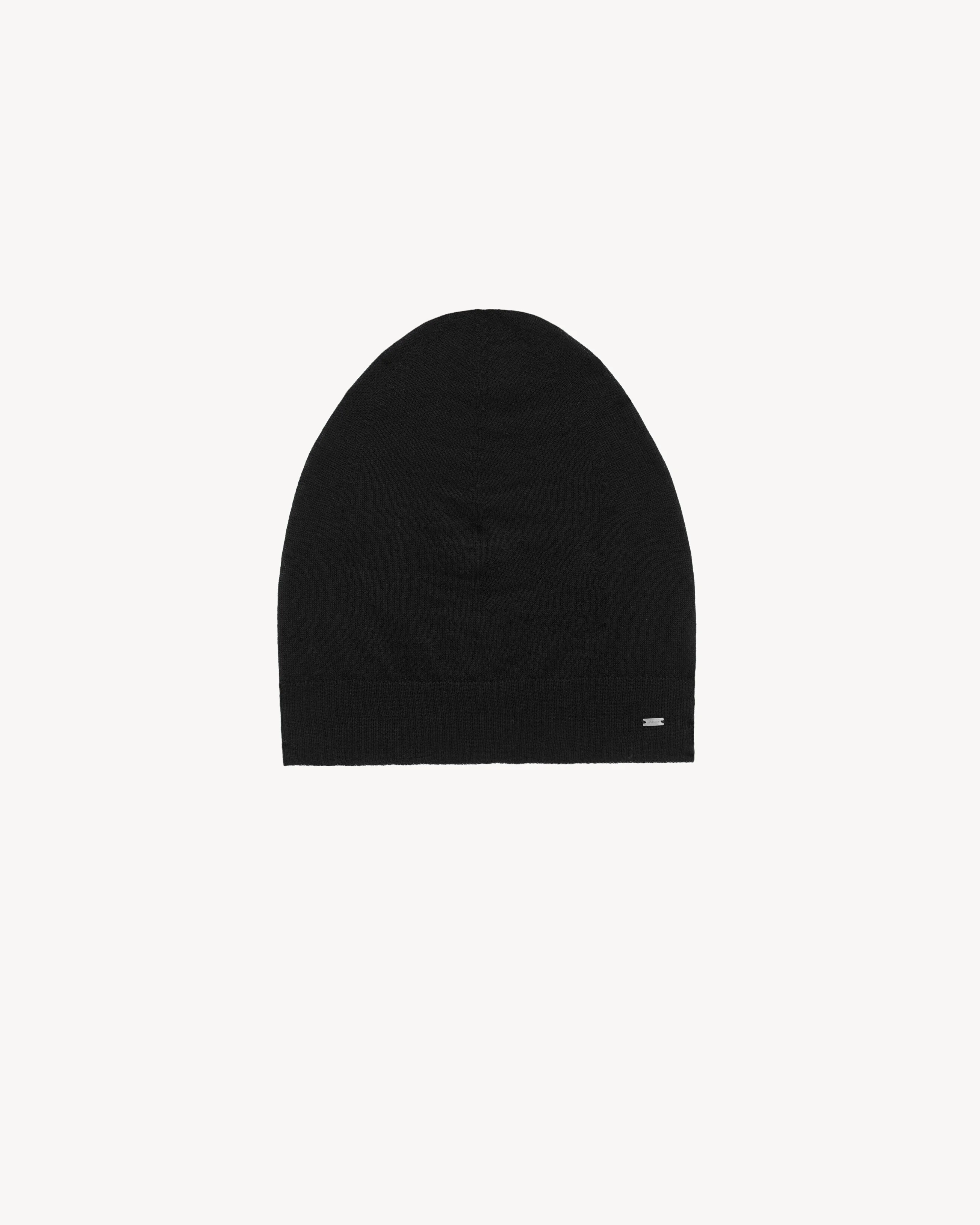 KNITTED BEANIE WITH A RIB-KNIT HEM. - SAINT LAURENT ENGRAVED PLAQUE - 100% CASHMERE - STYLE ID 7771713Y2011000 - MADE IN ITALY