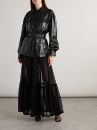 Belted leather jacket Black
