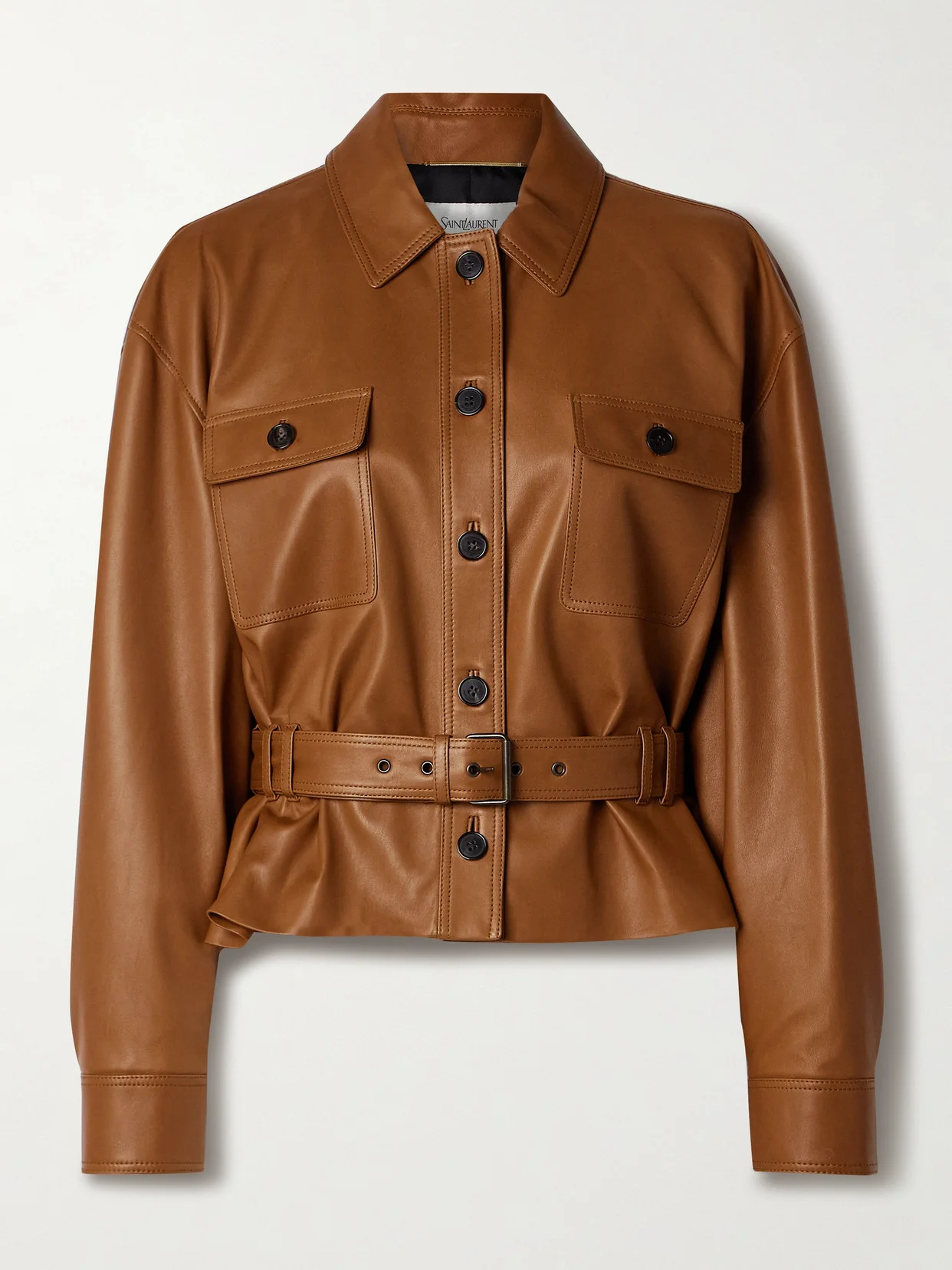 You can always turn to SAINT LAURENT for quality, investment pieces that will elevate any look. This jacket has been made in Italy from buttery soft leather and comes with a matching belt. Style yours fastened all the way or open over a simple tee.