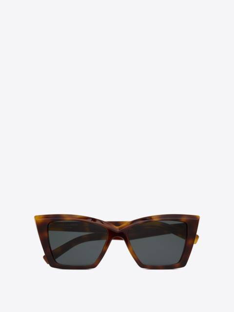 SQUARED CAT-EYE SUNGLASSES WITH ACETATE FRAMES AND NYLON LENSES. - 80% ACETATE, 20% NYLON - SAINT LAURENT ENGRAVED TEMPLES - 100% UVA/UVB PROTECTION - FRAMES COMPATIBLE WITH PRESCRIPTION LENSES - DIMENSIONS: LENS 54 MM / 2,1 INCHES, BRIDGE 16 MM / 0,6 INCHES, TEMPLE 140 MM / 5,5 INCHES - STYLE ID 813336820 - MADE IN ITALY