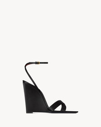 WEDGE SANDALS WITH A POINTED ALMOND TOE AND CRISSCROSSED STRAPS, FEATURING AN ADJUSTABLE ANKLE STRAP. - CERTIFIED COTTON AND SILK - LEATHER SOLE - ROUND SAINT LAURENT-ENGRAVED METAL PLAQUE ON THE INSOLE - ADJUSTABLE ANKLE STRAP - TOTAL HEEL HEIGHT: 11 CM / 4.3 INCHES - VISCOSE, SILK, SHEEPSKIN, METAL - STYLE ID 8230209QNAO1000 - MADE IN ITALY