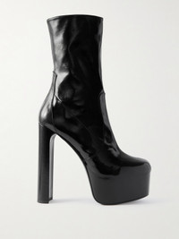Sleek and daring, SAINT LAURENT's 'Billy' boots are set on towering block heels balanced by a sturdy platform for dramatic lift. They're made from panels of supple black leather that create sharp lines and fit slim through the ankle. Wear yours with tailoring and dresses alike.