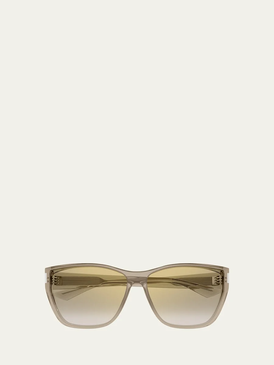 Saint Laurent cat-eye sunglasses in bio-injection plastic Eye/bridge/temple (in mm): 63-14-140 Solid lenses Saddle nose bridge Wide, tapered arms 100% UVA/UVB protection Made in Japan Proposition 65 warning for California residents Online Inquiries: BGS21_D54HB| Store Inquiries: #4962984